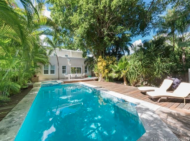 Cette sublime villa de presque 300m2 (297m2) est un véritable coin de paradis. Située dans le centre historique de Miami, vous trouverez dans le quartier des commerces en tous genres. Pour autant, la villa est très calme, au cœur d’une rue résidentielle familiale. L’entrée se fait par le salon avec cheminée, ouvert sur une salle à manger très lumineuse. Sur votre droite, une cuisine haut de gamme avec réfrigérateur à double portière, appareils en acier inoxydable et comptoir en granit. Au rez-de-chaussée, le sol est en carrelage blanc avec un motif légèrement grisé. Toujours au rez-de-chaussée, un autre salon fermé avec un espace bureau dans le renfoncement et une première chambre. A l’étage, 2 autres chambres avec parquet et un dressing pour la suite principale. En tout, la maison possède 3 salles de bain. Au fond du jardin, une dépendance a été aménagée en studio comprenant un salon pouvant faire office de chambre, un coin cuisine, un grand placard et une salle de douche. A l’extérieur, une magnifique piscine avec jacuzzi, une grande terrasse en bois et une salle à manger. Une allée de garage complète ce bien.